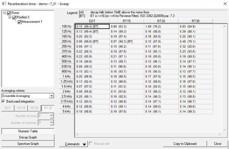 Reverberation may be measured simultaneously at multiple locations within a large room or auditorium, using a multi-channel instrument, such as a Soundbook or NoisePAD, or Apollo/Apollo Lite Boxes plus laptop; with the only limitation being the number of channels available on the instrument. The SAMURAI Reverberation Software Option enables reverberation to be measured and analysed in accordance with the respective ISO standards at a single position, or simultaneously at multiple positions within a large room, auditorium, theatre or indoor sports stadium.